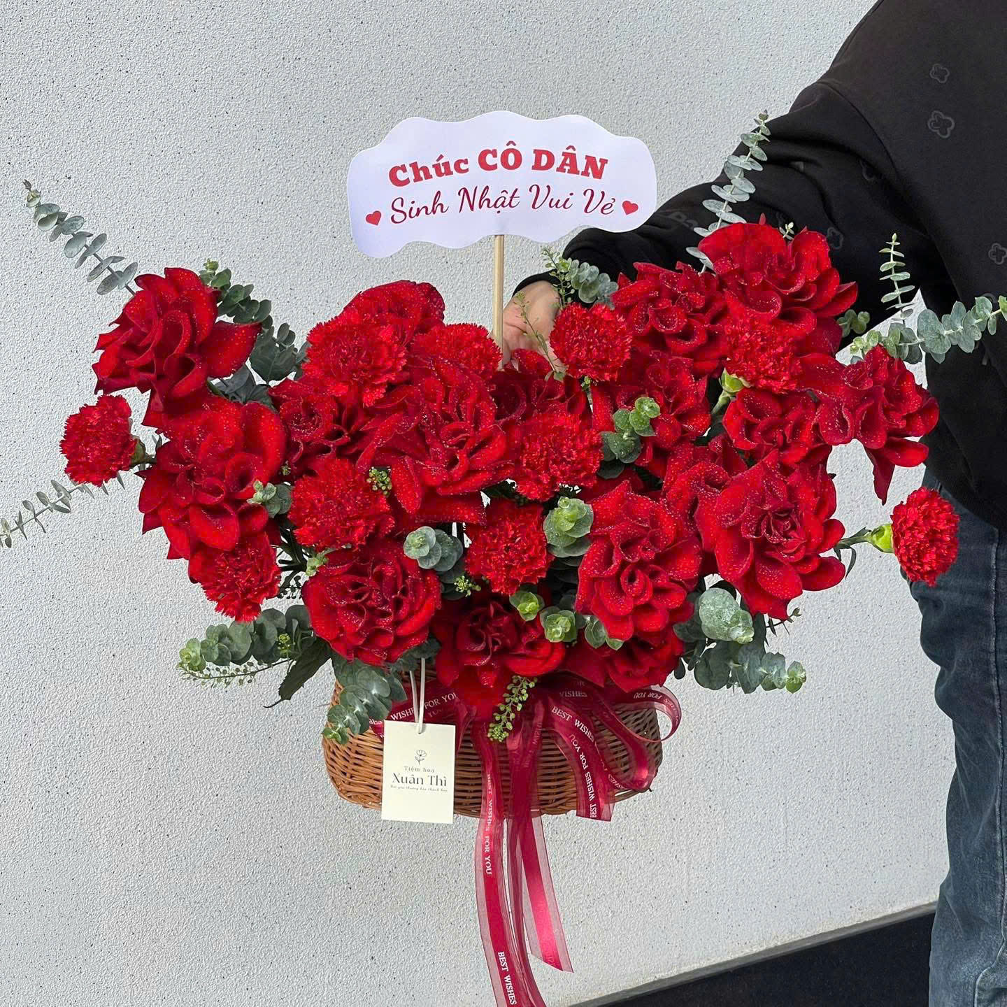 - Mục Đích Sử Dụng Hoàn Hảo: Giỏ hoa “Sắc Đỏ Tri Ân” là lựa chọn hoàn hảo cho những dịp cần sự trang trọng và tình cảm sâu sắc như: