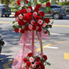 Voan xanh bay bổng kết hợp cùng nơ xanh navy, tạo nên vẻ ngoài thanh lịch, hiện đại và độc đáo, rất phù hợp để gửi gắm lời chúc trong dịp khai trương, lễ ra mắt, kỷ niệm sự kiện quan trọng.