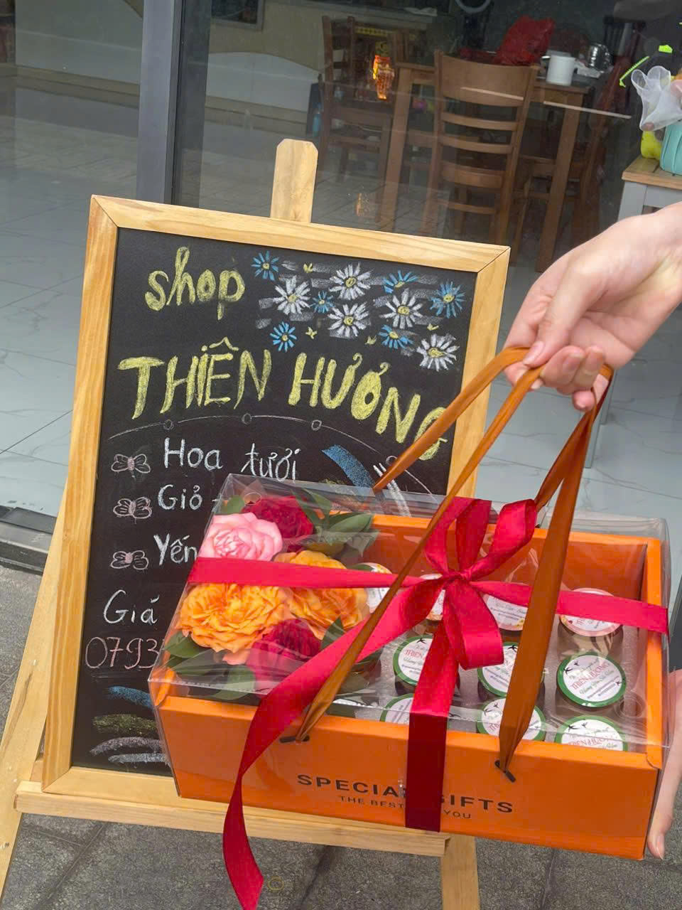 Hộp quà được trang trí hoa tươi tinh tế, nâng tầm giá trị quà biếu