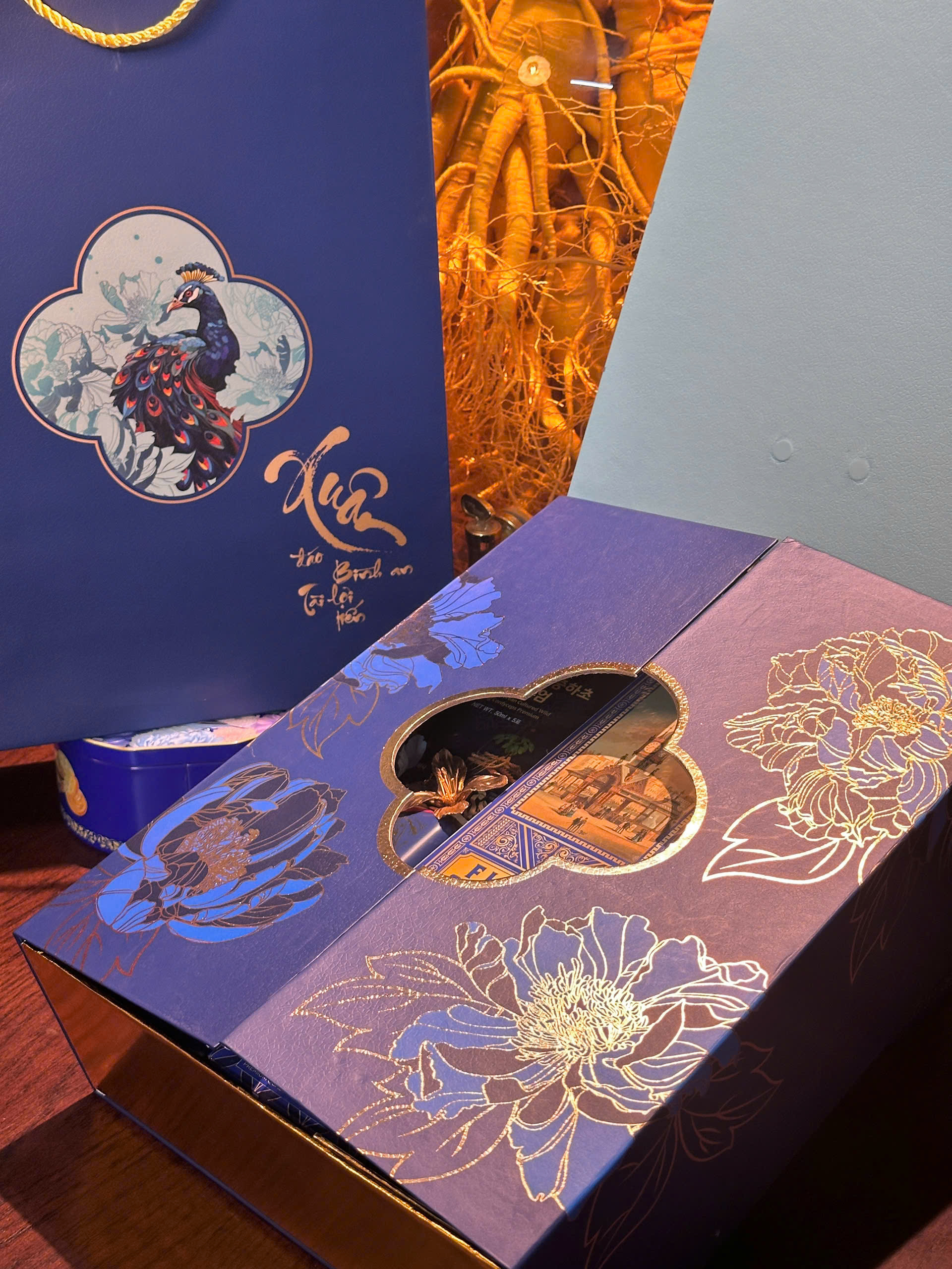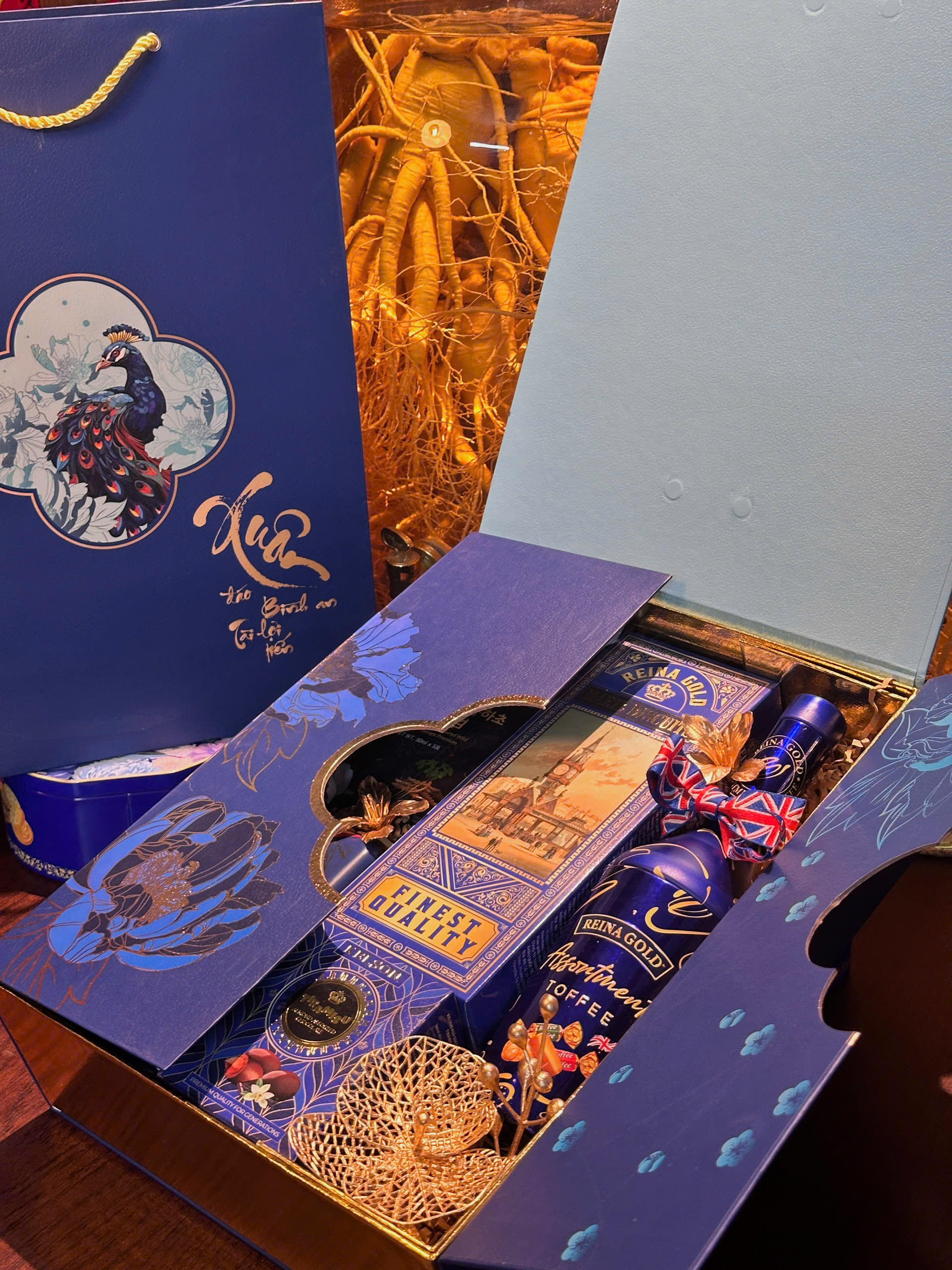 Đi kèm túi xách + bao lì xì, hoàn chỉnh để biếu tặng